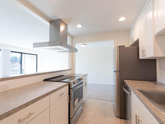 Completely remodeled 2 bedroom and 1.75 bathroom, 1200 sqft condominium unit overlooking the beautifully landscaped Winslow Green. Take in the wonderful views and activities of Island life on Winslow Way and Madison Avenue from your own home and spacious deck. Perfectly located in the heart of downtown Winslow, with easy access to local shops, restaurants, Seattle ferry, cinema, library, the marina and Bainbridge Island Schools. This unit features a nice open floor plan with a great kitchen and stainless steel appliances with lots of cabinets, nice dining area with a fireplace and spacious living room. All appliances, fixtures, windows, window treatments, doors, paint, flooring and carpet were added new throughout in 2020. Great primary bedroom with a primary bathroom, plus a second bedroom and full bathroom with tub/shower combination, a washer and dryer and additional closets and storage space. Includes one shared garage parking space. Owner prefers no pets, but a pet may be considered on a case by case basis with a $500 pet deposit. Water, sewer and garbage disposal are included in rent.