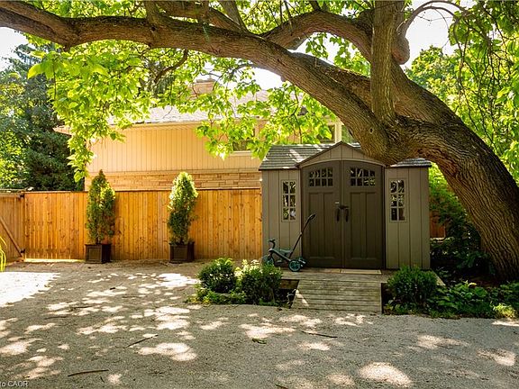 The Dolmage House, a historic Grimsby landmark surrounded by mature trees & nature. Built in 1876 by a local businessman for his wife & 3 daughters, this Italianate Victorian home blends timeless charm w/ modern luxury. The original double red brick walls are structurally sound & highly insulating, offering the perfect balance of character & warmth. The new flagstone pathway leads you to this 4-bed, 4-bath home spanning 3644 sq ft of thoughtfully designed space. Enter to a bright living area & an elegant dining room w/ pot lights, chandeliers, a century upright piano & heritage-style gas fireplace. Heart of the home is the remodelled modern farmhouse kitchen, featuring an oversized island, reclaimed barn wood elm floors, GE range oven, Bosch fridge, & Perrin & Rowe English Gold faucet. Adjacent is a mudroom/main-floor laundry w/ heated floors, built-in shelves, & a convenient powder room. Upstairs, the grand primary suite has 5 B/I closets & a 4-pc ensuite w/ a double vanity & curb-less glass shower. 2 oversized bedrooms w/ bay windows and spacious closets offer comfort, 1 of them w/ a Victorian coal fireplace. Third-floor loft retreat includes space for an extra bedroom luxurious 3-pc bathroom w/ a clawfoot tub. Century-old speakeasy wine cellar, featuring wood beams, & a bespoke wood wine rack originally made for a local winery. Outside, enjoy new Arctic Spas wifi enabled saltwater hot tub, wrought iron & wood fencing, 2 enclosed yards, & a Muskoka-style fire pit. Refurbished spiral staircase, originally made for the candle coal factory in Grimsby, leads to a rooftop terrace w/ escarpment views. 7-car parking area & room for a garage. Located in a top school district, enjoy immediate access to the Bruce Trail, 40 Mile Creek Pedestrian Bridge, & a public pool across the street. Historic Downtown Grimsby is just a 7-min walk. Updates include a new roof, tankless water heater, upgraded electrical panel, & new storm windows, blending heritage w/ energy efficiency.