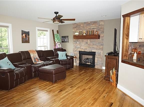 GORGEOUS Craftsman home in a quaint neighborhood. This 3 bedroom 2.5 bath home is custom top to bottom and just like new! Wood and stone features throughout the home. Hardwoods and large bedrooms throughout! Enjoy the backyard view overlooking the common area and cow pastures from the adorable breakfast nook. Master Suite is one of a kind with walk in grotto shower and free standing tub! Hand painted cabinets in kitchen and bathrooms. The garage floor is newly painted with a workshop to the side. Basement side is perfect for storage or a future den. Neighborhood has 3 picnic areas, walking trail, 2 fire pits, playground, basketball court sidewalks and streetlights! Don't miss out on this home, it certainly won't be available long!