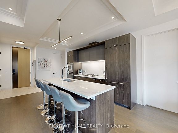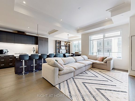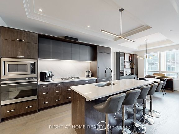 Experience elegance and convenience at The Berkshire Residences, just steps from Lake Ontario, Oakville Harbour, and vibrant downtown shops and restaurants. This boutique building offers exclusive amenities, including a rooftop terrace with lake views, fitness centre, lounge, party room, and catering kitchen.This 2Bdr+den suite with 10 coffered ceilings, engineered hardwood, premium porcelain finishes, and floor-to-ceiling windows opening to a balcony with gas hookup. The chefs kitchen boasts two-tone cabinetry, porcelain slab counters, gas cooktop, and breakfast island, enhanced by premium custom cabinetry upgrades.Additional custom upgrades include modern lighting with high-end fixtures and pot lights, smart home features (biometric lock, flood sensor, media package), builtin wardrobes, custom made office/bar and entertainment cabinetry wall, enlarged ensuite laundry, tandem parking with two EV charging spots, and a storage locker.