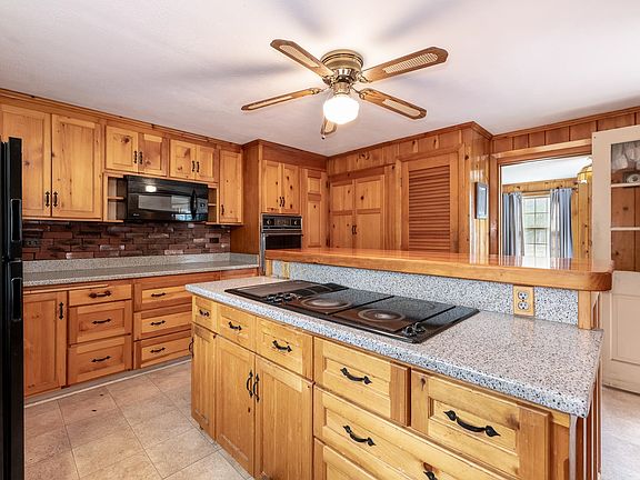 Natural wood fireplaceFull basementSpacious kitchenOversized bay window