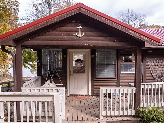 Adorable 1BR/1BA log cabin on Rough River Lake, located in the popular and locally known Big Bay area. This charming lakefront retreat sits on a great lot with a gentle slope to the water and easy access to your dock (transferable with COE approval). Enjoy beautiful waterfront views from the open kitchen and living area. The bright sunroom is perfect for relaxing or providing extra sleeping space for guests. Mini-splits offer year-round comfort. Furnishings can be included—turnkey and ready to enjoy!