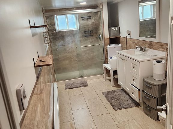 This finished basement apartment is approximately 800 square feet and includes a bedroom, living room, full bathroom, and kitchen. The unit features modern tile flooring throughout, neutral walls, and recessed lighting. The kitchen comes with white cabinetry, stone countertops, and full-size appliances, with space for a small dining table. The bathroom is updated with a large walk-in glass shower, vanity with storage, and contemporary fixtures. The bedroom/living area offers multiple storage solutions and room for furniture. All utilities are included heat, electricity, water, and Wi-Fi making this a convenient and move-in ready space. All utilities included (heat, electricity, water, and Wi-Fi). First month's rent and security deposit due at signing. No smoking allowed. Pets considered with landlord approval.