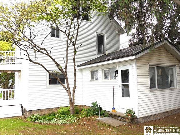 No need to compromise here. This easy care vinyl sided century home is located in a quiet Village of Falconer neighborhood. The charming home is located proximate to Village Park and village amenities. This 7 room, 3 bedrooms and 2 bath colonial is set on a deep lot with mature trees and privacy fencing. The first floor highlights include a spacious living room with high ceilings, many windows, a pretty spindled staircase, natural woodwork and a pellet stove. The entertainment sized dining room has unique architectural features and is convenient to the kitchen. The kitchen has an abundance of counter and cupboard space and the newer appliances are included. There is a first floor family room with an oversized window that overlooks the pretty rear yard. In addition to all this there is a laundry area and first floor bath. The second floor has three bedroom and a bath with tub and shower. The walk up attic is partially finished, insulated, heated and offers many possibilities to explore. Additional special features include: a welcoming covered front porch, side porches, a detached garage, covered patio and a garden shed. The first floor is heated with a gas fired forced air furnace(~5 yrs old) and the second floor and attic are heated with electric baseboard heaters. The home is serviced by two electrical circuit breaker boxes. Add it all up, and we think that you will agree, that arguably, this may be the season's hottest value.