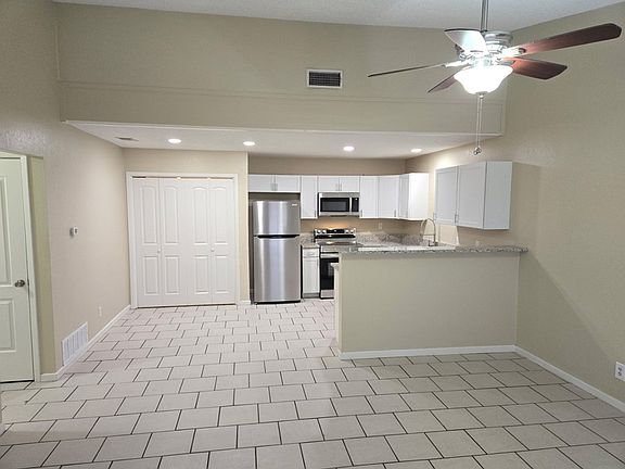 New, updated contemporary townhomes. Tile flooring throughout the home, new stainless steel appliances, granite counters, LED lighting, vaulted ceilings, laundry room. Spacious, quiet & comfortable. Beautifully designed-all one level, no stairs or neighbors above/below. Private fenced yard, covered patio. All hard surfaces makes it perfect for those w/allergies. No animals. Parking next to your home. Call, text, email for showings.