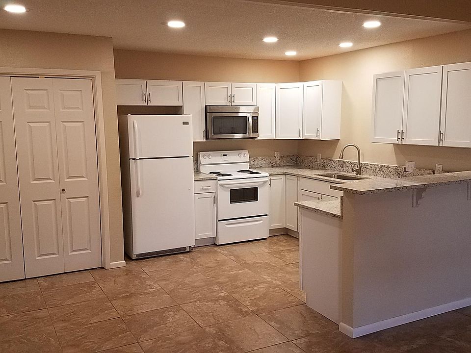 Enjoy coming home to this contemporary style townhome with shaker cabinets, granite countertops, tile floors throughout. Featuring a large kitchen with eating bar and an open floor plan. Vaulted ceilings, ceiling fans, laundry room, this has it all. Clean, quiet & comfortable. Park next to your home, no stairs or neighbors above or below! No animals. Call, text or email to schedule a tour today!