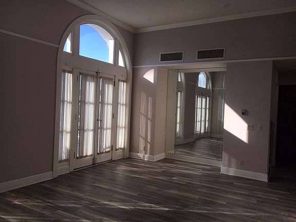Large balcony doorsVaulted ceilingsNew flooring