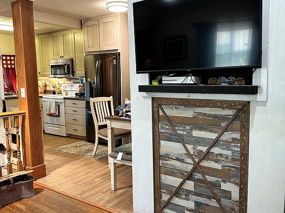 Quaint small town charm and a cozy 3 bedroom, 2 bathroom home with plenty of updates ! The spacious kitchen and living room combine newer renovations with original details. Main floor is well designed with two bedrooms and two full bathrooms. An additional bedroom is located in the basement with a large space for another living room if finished. The kitchen leads to an open back patio, fenced yard and small creek. Just beyond the creek you'll find the garage with a workshop and extra parking. Comfortable living in a great little community.