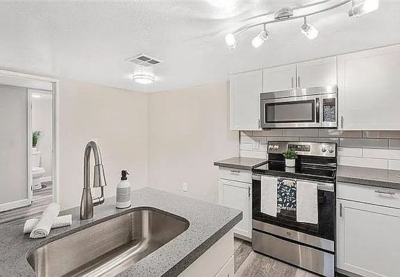 - Exterior features: Barbecue, Beautiful Landscaping, Brushed Nickel Fixtures, Business Center, Designer Kitchens with Brand New Cabinetry, Easy Access to Freeways, Guest Parking, Heating: Electric, High-speed Internet Ready, Lawn, On Call Maintenance, On-Site Management, One Year Lease, Online Maintenance Portal, Online Rent Payment, Package Receiving, Pet Waste Stations, Picnic Area, Quartz countertops, Screen Doors, Shopping, Dining and Entertainment Nearby, Spanish Speaking Staff, Stainless Steel Appliances, Subway Tile Backsplash, TV Lounge, WiFi in Common Areas