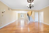 - Master Downstairs, Central Vacuum, Walk-in Closet(s), High Ceilings, Entrance Foyer, Mud Room, Solid Surface, Kitchen Island, Ceiling Fan(s), Pantry, Walk-in Shower, Blinds/Shades, Walk-In Closet(s)