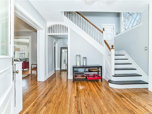 Meticulously restored & renovated Victorian on picturesque block. Enjoy al-fresco dining & entertaining all year-round on the stunning wraparound porch. This 5 bedroom home has been graciously updated to meet the desires of today's buyer. 1st floor features a spacious foyer w/original detail, formal dining room w/French doors that flow seamlessly to the outside dining porch. Expansive floorplan flows elegantly from room to room, whether you're enjoying an evening in front of the living room fireplace, dining inside/outdoors, or cooking in the kitchen, you feel connected throughout. Renovated kitchen boasts natural stone counters, stainless appliances, marble backsplash, breakfast bar & custom, built-in cabinetry. 2nd floor features master bedroom w/ensuite 5-piece master bath. Two additional bedrooms on this level share a beautifully renovated full bath. 3rd floor features 2 bedrooms, another stylish bathroom, WIC & more. Move right in & enjoy indoor and outdoor living at its finest.