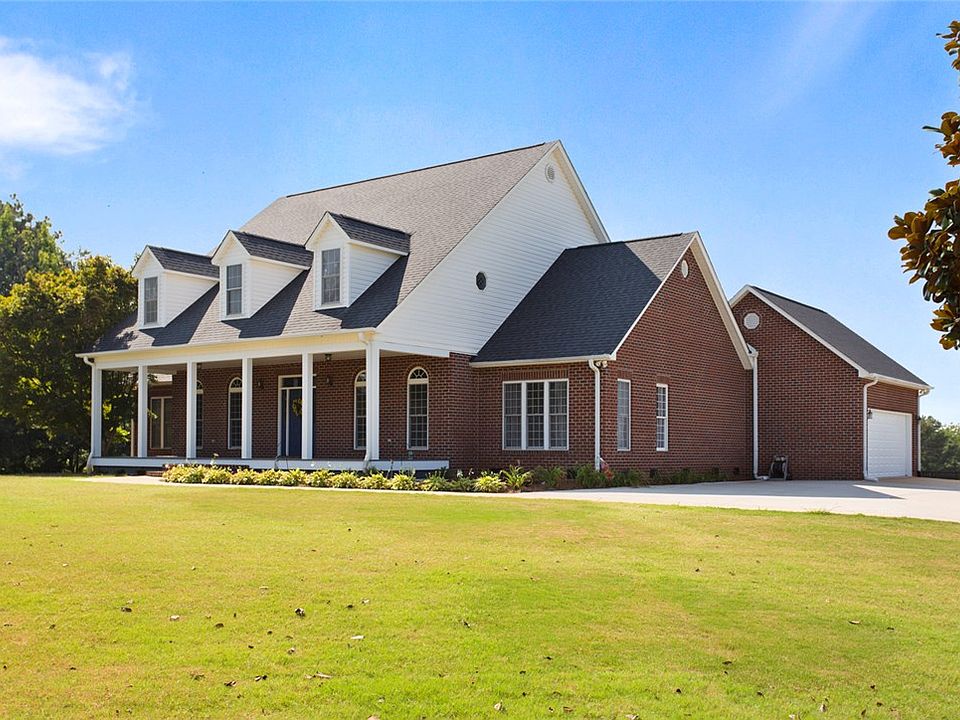 As you enter the welcoming large front porch you enter the foyer with a bold staircase with an office. Right past the office you will find a formal dining room currently being used as a flex space. The master suite is located on the main level with large walk in closet, 2 separate vanity spaces and a walk in shower. The cozy living area has an inviting brick fireplace for those cool winter nights. The wall of windows allows you to take in the beautiful views of the backyard oasis.