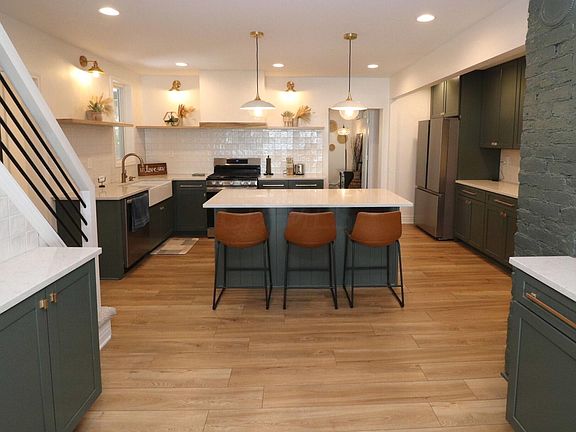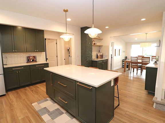 A great home for multi-generational living w/4 bedrooms, 3 full bathrooms w/potential for the walk-out lower level family room to be used as a 5th bedroom. This is a very private & wooded lot w/rolling terrain, 3 car garage w/2 carports, covered patio, deck, gorgeous front porch & completely remodeled interior that is both exquisite & timeless. The gourmet kitchen w/quartz counters, floating shelves & designer vent hood is at the center of the home opening to the vaulted dining room. Bonus space off the dining room could be used for a variety of purposes. Decorative wainscoting on 1st floor in living room & designer lighting throughout. Walk-out lower level family room/office. Someone seeking privacy will love this property & garage. Roof '22, newer windows/patio doors, HVAC & applncs.