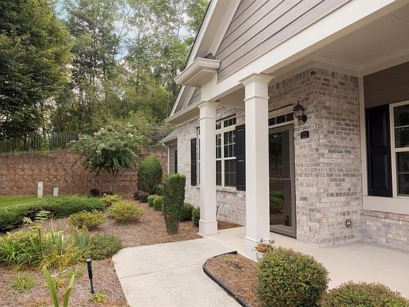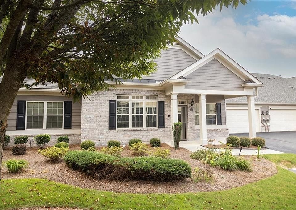 New listing in popular Orchards of East Cherokee. Enjoy a maintenance free lifestyle in an Active Adult Community. One owner-one level ranch. Private rear unit with a welcoming covered front porch. This home features crown molding, granite kitchen countertops, gas range cooking, stained cabinetry, eating bar and breakfast or keeping room off kitchen. Enjoy gas log fireplace in living room and open concept dining area. Two bedrooms include the primary suite with tray ceiling, large shower, dual vanities and walk-in closet. Guest bedroom with tray ceiling and full bath. New hot water heater and roof replaced in 2020. Generous unfinished storage space with walk up permanent stairs. Great Hickory Flat location with walking to shopping, dining and library with close by, new Northside Cherokee Hospital. Near I-575, downtown Woodstock and Roswell.