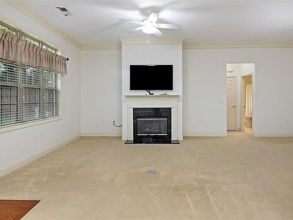 Gas log fireplaceCrown moldingCovered front porchOpen concept dining areaWalk-in closetLarge showerGas range cooking