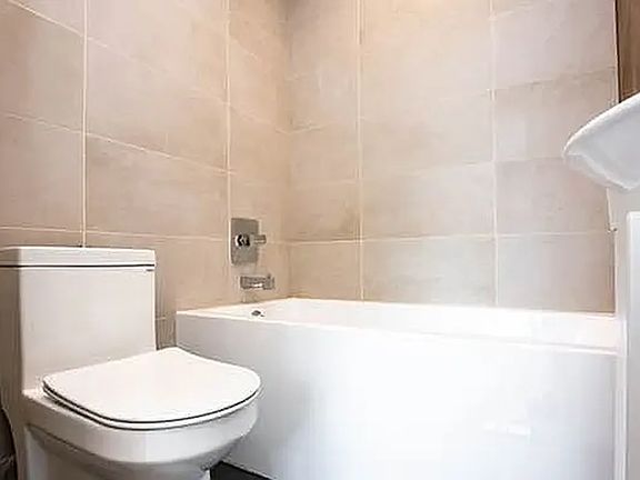 Fully tiled bathroom with deep soaking tub