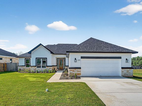 Stunning new construction, open floor plan filled with natural light. Custom cabinetry, granite countertops, large island, stainless appliances, walk-in pantry, spacious laundry room. The primary suite offers a garden tub, walk-in shower, dual vanity, and a walkthrough closet that connects to the laundry room. Stone and stucco construction, a finished 2-car garage, plumbing for water softener, fully fenced backyard, landscaping and irrigation system add comfort and convenience. Great location near Heritage School, no other homes directly behind or to the right of the home at this time.