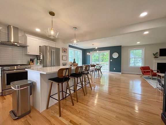 Nestled in the sought-after cul-de-sac neighborhood of Crane s Crossing, this beautifully maintained 3-bedroom, 2.5-bath Colonial offers the perfect blend of modern comfort and timeless charm. With over 1,900 square feet of living space and built in January 2022, this home will be available for a July 1st move in. Enjoy the convenience of a two-car garage and generous off-street parking for up to four additional vehicles. A full, unfinished basement provides abundant storage options. Just one mile from downtown Ayer, you'll be moments away from local shops, restaurants, and the commuter rail offering both tranquility and accessibility. The main floor consists an open concept spacious eat-in kitchen fully equipped with stainless steel appliances (refrigerator, dishwasher, stove, oven, and microwave drawer) that seamlessly flows into the dining and living areas, creating an ideal space for both daily living and entertaining. There's a flexible bonus room perfect for a home office, study, or playroom. From the main floor, you have access to the full un-finished basement, two car garage as well as the private rear deck that overlooks the wooded lot, offering a serene retreat. The second floor consists of an expansive main bedroom that boasts a walk-in closet and an en-suite bathroom with a double vanity and a shower. There are two good sized bedrooms and a common full bathroom with a double vanity and a tub. There's an additional bonus room, making that two rooms in the house to use as you see fit! A laundry room with side-by-side washer and dryer completes the second floor. Additional features of this home are central heat and a/c with dual-zone climate control (main floor and second floor) for optimum comfort, a water softener system, hardwood floors throughout the main floor and carpet throughout the second floor. There's a front porch as additional outdoor space and a large backyard! Residents have access to nearby parks, walking trails, and recreational areas. Minutes from downtown Ayer's shops and restaurants, with easy access to the Nashua Rail Trail, the commuter rail and major highways. Tenant responsible for all utilities. No pets or smoking permitted. This is a rare opportunity in Ayer s competitive rental market. With its modern amenities, prime location, and serene neighborhood setting, this home is a standout. Don t miss your chance schedule a showing today and discover all that 123 Pleasant Street has to offer! Video tour available.
