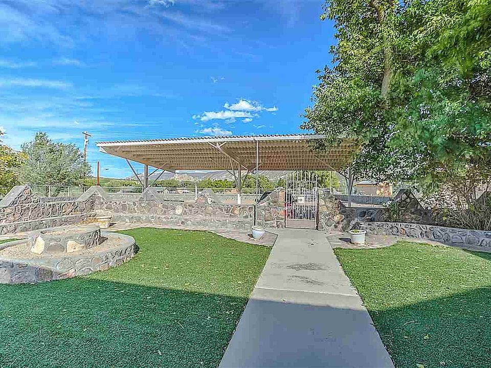 PRICE REDUCTION! If security is important to you, check out the electronic gate to this home. Three of the property sides have a beautiful rock wall. There is lots of space for everything in this yard. Enter into the 3 bedroom and two bath house and enjoy the openness of the great room; the kitchen with the custom counters and cabinets, the dining area with a counter and stools to enjoy the aromas of a home cooked meal, and living room with the cozy fire place, and off to the side in a room of it's own - awaits the indoor hot tub. When you need your "you time" or just time to go to bed, walk over and slumber in one the bedrooms. the master bedroom is very spacious. Everything is wonderful but the biggest surprise is the enormous two story high rock wall shop and concrete path to it. A place to work or a place to play! BELOW CURRENT APPRAISAL.