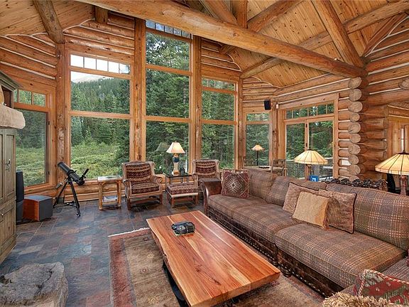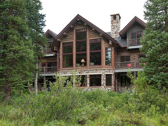 This quintessential log estate is the epitome of perfection. Set amongst 3+/- private acres of old growth forest with a babbling brook and mountain views, you will not find a more perfect and serene mountain setting. Meticulously crafted custom log home features artisan touches throughout, chef's kitchen, beautiful great room with massive windows, fully equipped rec room with pool table, foosball and wet bar. All of this and just an easy 9-minute drive to Breckenridge.