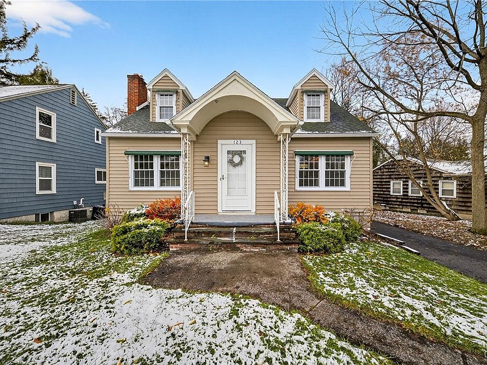 Welcome home to this beautiful three-bedroom Cape Cod, located in one of the area’s most desirable neighborhoods and top-rated school districts. This residence blends classic character with thoughtful modern updates—creating a home that feels instantly welcoming the moment you step inside. As you enter through the front porch, you will find a convenient foyer, a spacious bright living room with gleaming hardwoods, a cozy wood burning fireplace and built-in shelving. The dining room is open to the updated kitchen, perfect for entertaining. With fresh finishes and a bright, open feel, it’s a space that naturally draws everyone together. There is also a half bath and generously sized bedroom on the first level. Upstairs you will find an updated full bathroom and two additional large bedrooms with plenty of storage space. The partially finished basement adds tremendous flexibility, featuring a bar area, a second kitchen, a laundry area, a workshop space, and additional living space—an ideal setup for a potential in-law suite, multigenerational living, or a private retreat for guests. As you venture outside, enjoy your three season room with two sliding glass doors, a partially fenced yard, and a one car garage. Recent updates include new windows and siding, both with a lifetime warranty and more! An ideal place to plant roots in a sought-after community, this Cape Cod offers a warm welcome and endless possibilities. Close to highways, shopping, restaurants for convenient living in a peaceful neighborhood.