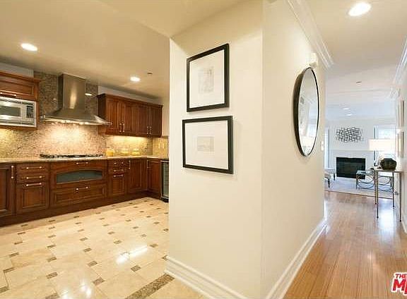 Urban Chic Living. Live in the vibrant heart of where it's happening - Poised between the downtown art scene, the studios, and the westside. This sun-filled south east front-facing unit offers superb location plus a terrific floor plan which include only one common wall, a large gourmet kitchen with quality stainless appliances, cherry cabinets and breakfast bar, an open-living dining with fireplace and sliders open to private balcony overlooking quiet tree-lined street, a private master suite with fireplace, plus 2 additional bedrooms that share a full bath and a powder bath. The washer and dryer are closeted along the bedroom wing. D~cor sparkles with all new light fixtures, fresh paint, moldings, bamboo hardwood floors throughout, and wide plantation shutters. The condition is impeccable. The low rise complex is inviting with only 14 units. Moments from stylish Robertson shops and restaurants and Cedars-Sinai. Homeowner's fees are $450 p/month.