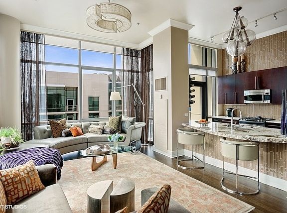 LISTING IS IN PRIVATE UNTIL THE NEW YEAR. Amazing opportunity for knockout PENTHOUSE home in the best tier of the West Loop's premier building, The Emerald! With dazzling skyline views from 15-ft high walls of floor- to-ceiling glass, this highly customized Southeast corner residence has extensive designer finishes throughout: super cool custom stackstone tiled walls, solid core doors, sophisticated high-end lighting, gleaming hardwood floors, & custom window coverings. Chef's kitchen w/ full height espresso cabinets, stainless steel appliances, & granite countertops opens to living space, creating an exciting open-concept floor plan. Two spacious terraces off of the kitchen & living/dining room are ideally situated for entertaining and soaking in the views. Great bathrooms w/ stone countertops, separate shower & soaking tub, and upgraded fixtures. Phenomenal master suite with large walk in closet & custom shelving. 1 heated garage spot in attached garage on main floor - additional $35K. 24 hour doorman, fantastic gym, 2 party rooms, business center, & onsite management all in incredible West Loop location!