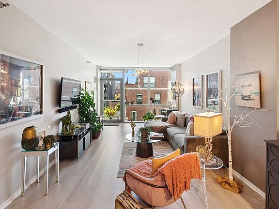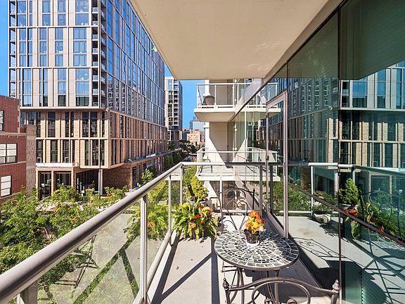 Amazing opportunity for stunning home in PRIME West Loop's highly sought after Emerald! Sleek yet warm and inviting with floor to ceiling walls of glass facing West and 9' ceilings add great wow factor from the moment you walk in. New wide plank light hardwood floors throughout entire unit elevate the space perfectly. Modern high-end open kitchen w/ full height custom flat panel cabinets, stainless steel appliances & granite countertops w/breakfast bar opens up into ideal open concept floor plan. Oversized balcony off of living/dining room extends your living space and offers great indoor/outdoor spaces to relax and entertain. Bedroom has floor to ceiling windows, professionally built out closets, and ample space for a king size bed. Spacious bathroom w/separate shower & soaking tub, great storage, & in unit w/d. Additional updates include newer neutral paint throughout and upgraded light fixtures adding the perfect pops of glam throughout. 1 deeded parking spot in attached heated garage-30K. Full service modern building w/doorman, fitness center, party rooms, business center, etc. Dream location in heart of the West Loop!