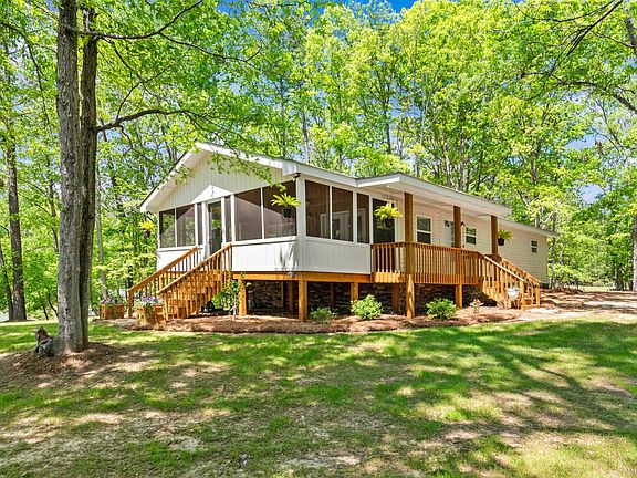 PANORAMIC DOLLBABY WITH DEEEEEEP WATER! SWEETEST LOT YOU WILL FIND! Mint condition getaway - you feel like you own a private island with 500+/- feet of gorgeous water frontage. Home is completely renovated and is like new construction - absolutely everything down to bones is NEW! Fabulous screened porch overlooking huge lake views from every angle! Prettiest double boat house you have ever seen.... all sitting on the deepest prettiest water you can find on Sinclair! This property was once an older mobile home but has been lovingly rebuilt with care and quality. If you come you are GUARANTEED TO FALL IN LOVE. One time $3000 transfer fee and annual lease rates apply.