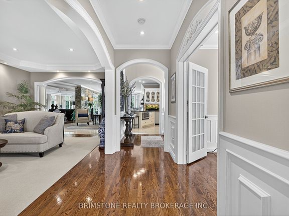 Backing directly onto North Maple Regional Park, this custom-built home offers over 5,700 sq ft of finished space and the rare feeling of complete privacy all while being just minutes from the city. Surrounded by mature trees, the backyard feels like a hidden escape, where nature is your only neighbor. Inside, thoughtful design and upscale finishes define every room. With four spacious bedrooms upstairs and two additional bedrooms in the basement, the layout is ideal for families or multigenerational living. The primary suite includes a private sauna for spa-like relaxation, while heated floors extend through the kitchen, laundry rooms, basement, and all upper bathrooms. Travertine, marble, and oak hardwood add timeless elegance throughout.The main floor features 9-foot ceilings and coffered details that create a grand yet welcoming atmosphere. Smart home features include 8 exterior cameras, a smart thermostat, and a full security system. Seven fireplaces provide warmth and ambiance across all levels.The finished basement offers over 2,300 sq ft of flexible space, complete with a second laundry room and a dedicated room roughed-in and ready for a full kitchen perfect for a private suite, rental opportunity, or extended entertaining. Outside, the Endless Pool exercise system with hydraulic cabana adds a unique wellness element to this already impressive home.With a new roof (2023), new A/C, a finished garage, and no detail overlooked, this is a rare opportunity to enjoy luxury living surrounded by nature just 6 km from Cortellucci Vaughan Hospital and close to everything Vaughan has to offer.