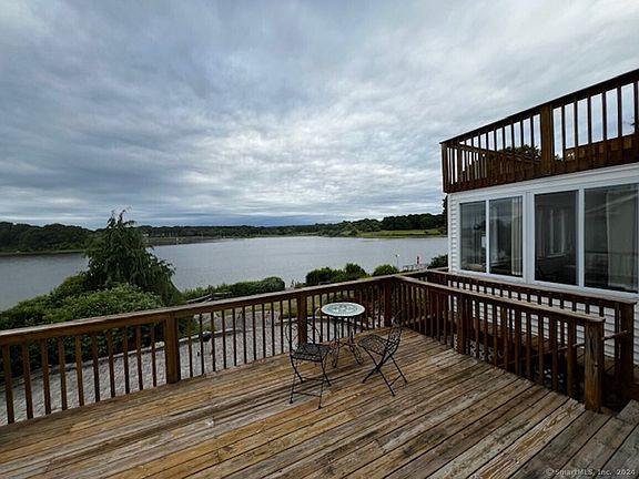 Waterfront Colonial partially furnished ready for yearly rental available immediately. A rare find overlooking Palmer's Cove with direct access to the Fishers island Sound. Bring your kayaks, canoes and get out to open waters. This 3 bedroom 2.5 bath home has an expansive eat in kitchen showcasing impressive views of the Sound. Slider out to the deck for morning coffee, lunch and sunset dinners. Living room has a stone fireplace and leads to a sunroom also overlooking the water and views to Haley Farm State Park beyond. The upper level hosts a Master bedroom suite with private deck, 2 other bedrooms and a bath. Lower level includes a 2 car garage abutting a partially finished basement, workout room etc. and walk out to a covered lanai. Manicured sloped lawn and terraces/bi-level patio takes you to the waters edge. Access for fishing and boating. Also, close to Esker Point Beach for Summer concerts and daily beach access. Palmer's Cove Marina is close for larger boats and moorings. Something for everyone in this property ! Come see !!