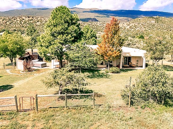 Updated home on cul-de-sac corner lot,2.13 acres, 9.8 mi to ABQ,paved roads. Engineered maple floors, porcelain tile in kit/din/laundry,solid wood interior doors w/custom molding & rosettes. Great rm: 10' ceilings,picture windows,Harman pellet stove. Kit:maple cabs w/crown,soft-close drawers & hinges,granite,tile backsplash,Wolf convection oven,Wolf induction cooktop,pro vent hood,RO water,recessed lighting & solar tube. Primary suite: patio access,walk-in closet,cultured marble shower, granite vanity,porcelain tile,upgraded fixtures. Hall bath: travertine flrs natural marble countertop & tub surround. All BRs walk-in closets; mtn views from 2. Outdoor: 760 sf covered patios,paver patio,hot tub,kiva FP,privacy wall. 3-car fin garage,barn. TPO roof,refrig AC, new septic 2020, commwater.