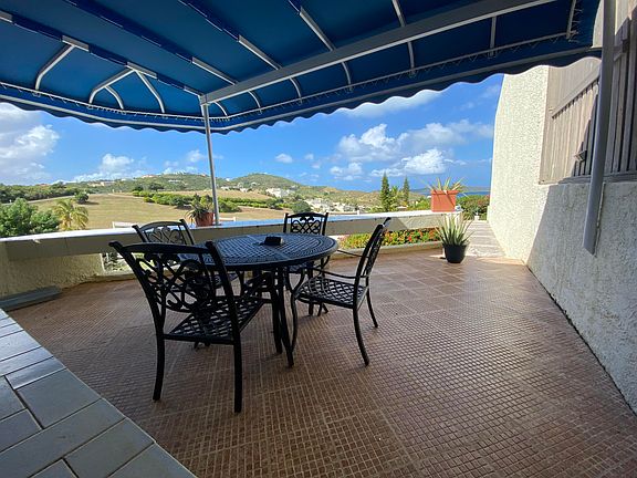 What you have been waiting for! This quiet and private one bedroom one- and one-half Reef condominium has a pretty view of the Caribbean Sea and Buck Island. The large awning in the front nearly doubles the living area and brings the outside in. Open kitchen, nice appliances including a washer and dryer. This unit has a back atrium as well as the large front patio and is perfect for renting while you are not in residence. You will love the peace and quiet of this east end location, while enjoying the amenities that include a large pool, 9-hole golf, tennis courts, pickle ball courts, restaurant, pro-shop, sandy beach, and an on-site office with a gated entrance. This unit s being offered furnished.