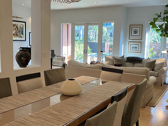 Lease term requires a minimum of 12 months. This exquisite, fully-furnished, Mediterranean estate is located on one of the most prestigious garden malls in the highly sought-after Silver Strand, just steps from the beach. With 5 bedrooms and 5.5 bathrooms, this luxury property offers the perfect blend of privacy, style, and functionality. The chef's kitchen (on ground floor) is a culinary dream, featuring top-of-the-line double ovens, a 6-burner range, built-in refrigerator, granite countertops, and central island. The spacious open family room seamlessly flows to the south-facing patio, creating an ideal space for entertaining. Custom cabinetry and hard-wood floors add to the allure of this home. The large primary suite is also south-facing and is a true retreat, complete with a cozy fireplace, sitting area, private balcony, and a luxurious master bath with dual sinks and a walk-in closet. Natural light pours into every room, creating a warm and welcoming atmosphere. The third floor can be a gym, office, or media room - complete with its own full bathroom. Outdoors, unwind and stargaze in the private patio featuring a luxurious spa with direct access onto one of the Silver Strand's most coveted gardens. Additional amenities include a 3-car garage and a prime location near LAX, bike paths, and top-tier Venice and Marina del Rey restaurants. This rare opportunity combines exceptional privacy and seclusion with easy access to the best that Marina del Rey has to offer. Owner pays for spa and garden maintenance. Last month's rent due at signing. Pet friendly. No smoking.