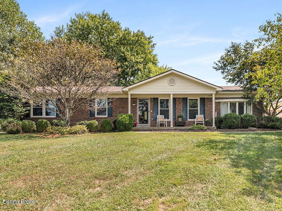 Welcome to this charming ranch-style home in the sought-after Thorobred Acres subdivision, perfectly situated on a beautiful 1-acre lot. With 3 bedrooms, 3 full bathrooms, and approximately 3,348 sqft of finished living space, this home offers plenty of room to spread out both inside and out. The inviting front exterior features tasteful landscaping and a large covered porch, ideal for relaxing. Inside, the living room is bright and spacious with two large windows. The formal dining room showcases gleaming hardwood floors and doors leading to the outdoors, while the kitchen impresses with white cabinetry, granite countertops, and a stylish tile backsplash. A second family room with oversized windows and exterior access provides even more gathering space. The primary suite is generously sized with a private bathroom. Two additional bedrooms share a large hall bath. The fully finished walk-out basement offers a third expansive family room, a versatile bonus room currently used as a 4th bedroom, and another full bathroom with a walk-in showerperfect for guests or extended family. Step outside to enjoy the oversized patio overlooking the enormous, fully fenced backyard with mature trees. An oversized two-car detached garage adds excellent storage and parking space. This home combines comfort, function, and outdoor living on a rare 1-acre lotdon't miss your chance to call it yours!
