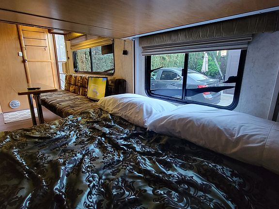 Beautiful studio for rent. Rented as a storage space. Beautiful private studio for rent only about 10 miles from the ocean and cool sea breeze in a clean furnished luxury camper with lots of room for storage. This private studio is to be rented on a month-to-month agreement for storage. This very clean studio comes almost fully furnished with 2 beds, sheets, pillows, and bedspread. It also comes with air-conditioning, propane heater, shower bathroom, refrigerator, freezer, microwave, smart flat-screen TV, stove, oven, table, couch, lots of storage cabinets, extra storage under the beds and under the couch. The owner paid utilities are electricity, water, trash, high-speed internet, and sewer. This camper is parked in a beautiful, gated back yard full of fruit trees shaded by a two-story house in an improving part of South Los Angles City less than 10 miles from the ocean beaches with a cool sea breeze most of the year and air-conditioning. The rent for this studio is $1,200 per month with a $1,200 security deposit. Must have a 650 or higher credit score. If the rest of your application qualifies, we may accept less than a 650 FICO credit score with a double security deposit that is refundable for this storage space. The storage space comes with shared front yard, back yard, barbeque grill, fire pit, patio table, umbrella, chairs, orange tree, apple tree, pink grapefruit tree, lime tree, plum tree, peach tree, banana trees, and a black berry bush all included on a month-to-month rental agreement. This storage space is available now. No pets, smoking, loud music, parties, or subletting. No other storage space is permitted to be used on the property. Street parking only. No mail or electric vehicle charging permitted. The studio plugs into the electricity, water, and plumbing of the house, all included for no extra charge. The camper is to stay parked in the shade behind the house and is not permitted to be towed or moved anywhere.