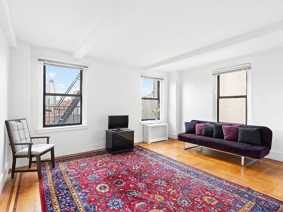 Come home to this sunny and charming, extra spacious studio with separate dressing room, and dining area on the upper west side, only one block away from central park! Located one floor from the top in the rear of the building, this sundrenched apartment facing north and east gets wonderful light all day long, and is still pin drop quiet. Cross breeze from two exposures, there is also a windowed kitchen, and windowed bathroom. Terrific closet space throughout. With a little updating, there are endless possibilities.