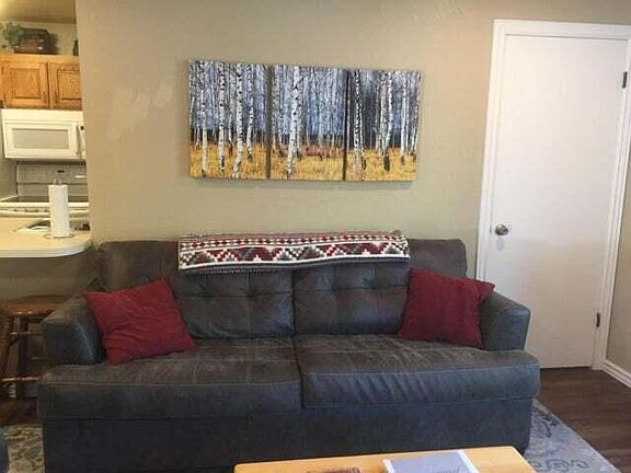 This turn-key SINGLE LEVEL with entry at GROUND LEVEL is so convenient for Owner/Renter. This Condo has been remodeled and has a pleasant atmosphere. Nightly rental when not used by owner. Association fees include snow removal as well. All Furnishings stay, including a fully stocked Kitchen. Newer variable speed fan lights, dimmable lights, blackout curtains, more efficient heating system, and artwork/decorations. Must see to appreciate this darling condo at Eagle Point Resort!!