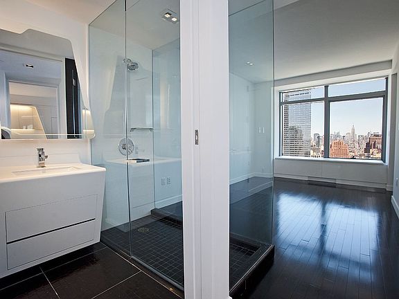 123 Washington Street No. 40D is a large one-bedroom apartment located at The Residences at the W New York Downtown with expansive skyline views overlooking Lower Manhattan and the Freedom Tower. This luxury abode features ebonized maple hardwood floors throughout. The interiors at the Residences at W New York Downtown have been designed by Berlin-based Gaft Studio, specifically outfitted for the modern cityist. Each residence features a washer/dryer combo.