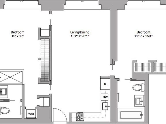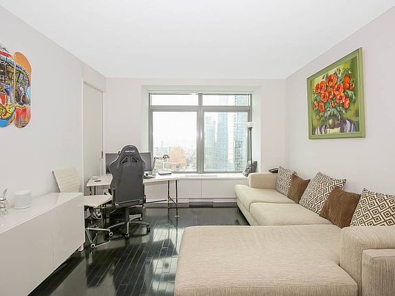 At 1100sf, this 2bd/2bath home features wall-to-wall windows throughout. From foyer step into your open kitchen and living room with magnificent view of Freedom Tower. Great layout with split bed rooms.