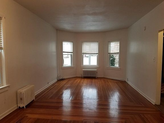 Spacious and sunny first floor apartment. Open concept living room and dining room with hardwood floors. Large eat-in kitchen. Three bedrooms one has no closet. Close to public transportation and the train. Coin-op laundry in the basement. Deck for summer enjoyment. On street parking. Storage in basement. No pets and no smoking. First months, last months and real estate fee is required. Good credit and references. Tenant is responsible for oil heat, hot water and electricity.