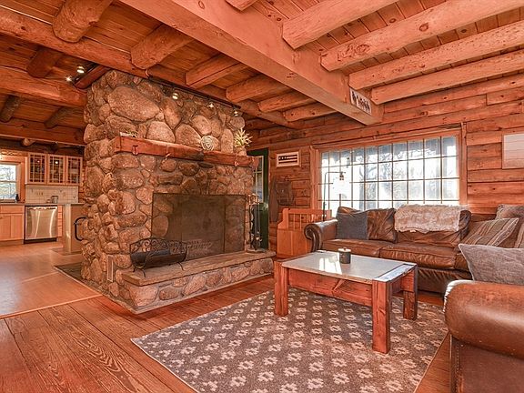 Nestled on over 4 acres of land, this charming log cabin with farmers porch will give you peace and tranquility. Come through the door and you are surrounded by natural light beaming through windows . Hardwood floors, gorgeous wood everywhere and an open floor plan. Kitchen with an island and lots of counter space has a wood stove. Easy entertaining with the adjacent dining room. Living room is so comfortable and cozy with the amazing stone fireplace. Nicely updated full bathroom. Mudroom for the side door opens to a fenced in area. Upstairs are two good size bedrooms. One has a bonus area that can be used for an office, exercise spot or sitting area. Outside your property offers so much -large fenced in area, shed with lots of storage,carport, additional building with electricity that can serve as a workshop and an expansive backyard. Location has great highway access, trails to hike, beautiful lakes. Get ready to make your move to private retreat at 123 West St.