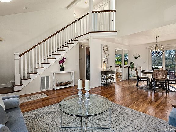 Beautiful home, with large front porch. Tons of natural light and vaulted ceilings in formal living room & large formal dining room, slider out to backyard. Hardwood floors on main level. Good size kitchen with room for informal eating area. Granite counters and mosaic backsplash and large windows looking out to the fenced back yard. Off the kitchen is a family room with fireplace and slider to fenced backyard and patio. Finishing the lower level is 1/2 bath with access to 2 car garage. Upstairs there are 3 bedrooms and 2 baths & laundry. Master bedroom has walk in closet with custom cabinets. Home has gas heat and AC. Home feels larger than sq. Ft. Northshore school district. Close to shopping and parks.