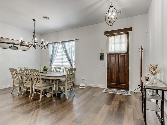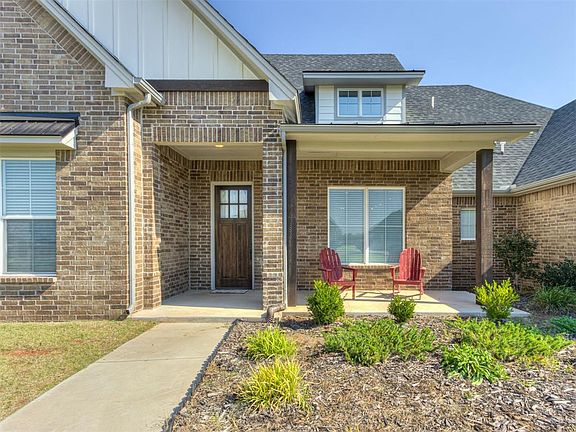 One look and you'll fall in love with this stunning modern farmhouse! This home sits on a cul-de-sac, on nearly 2/3 of an acre in the highly sought-after Pulchella neighborhood. The moment you walk through the door, you'll appreciate the open concept layout featuring soaring ceilings, a spacious dining area, stylish finishes, a large living room space, and an incredible kitchen. The kitchen provides a functional layout with a streamlined design and is equipped with gorgeous quartz countertops, stainless steel appliances, tons of cabinetry, and a large kitchen island making entertaining effortless. Just off the kitchen you will find the perfect office nook and a massive walk-through pantry. This home also features a dreamy master suite, a mudroom, an attractive powder bath, 3 additional bedrooms (one of which is equipped with its own full bathroom), and an additional full bathroom. An added bonus this beautiful, gated neighborhood is just minutes from major highways, making commuting to Moore, Norman, Downtown OKC, and surrounding areas a breeze! Schedule your showing today and be ready to be impressed!!!