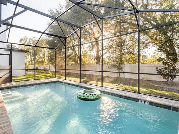 This home is in the greatest location. With many things nearby, including Walmart, urgent care, restaurants, and lots of entertainment. The neighborhood consists of few homes, quiet, and family-friendly. The kitchen is open to the living area with plenty of space. The pool has a large lanai great for entertainment. It has 4 bedrooms, one located on the first level and a master plus 2 other on the second floor. It has 3 full baths, with one being on the first level. The master is large with great light. Has a small loft to relax. The home is very well maintained and will include most of the furniture shown. Ask about pay-in-advance pricing.