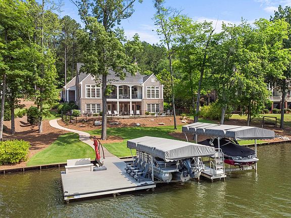 PRIVATE LAKEFRONT HOME FOR SALE IN REYNOLDS LANDING. This home sits on a Beautiful Lake Lot in the Exclusive Enclave Section of Reynolds Landing. Specifically designed by Architect William Baker of Atlanta and decorated by Susan Bozeman Design, Inc, this home includes 4 Bedrooms & 4 Bathrooms with Double Lavatories. Each Bedroom has a Large Walk-In Closet. The Main Floor hosts the Master Bedroom as well as a Powder Room. Marble Counter Tops & Plantation Shutters are featured throughout the house. The Separate Laundry Room has a Large Laundry Sink, a New Speed Queen Washer & Dryer, and offers an abundance of Counter Space & Cabinets. This home also features a Water Softening System and Reverse Osmosis with a dispenser at the Kitchen Sink. You are greeted with an open feeling across the inside of the home offering beautiful lake views from every angle. The large Main Floor Living Area is open to the Kitchen and Dining Area which is great for Friend & Family Gatherings. Both areas also open out onto the Large Porch with a Fire Place, Wall Mounted TV, and Beautiful Lake & Pool Views. Off the Kitchen you'll find a Butler's Pantry and a separate Bar Area equipped with a Wine Cooler & Ice Maker. A plethora of Cabinets offer plenty of Storage Space. In the front of the home, kick back and relax in the Study/TV Room. On the Terrace Level you are greeted by a Large Gathering Room with ample space for watching TV, Movies, or Playing Games. The Gathering Room also opens up to a Covered Porch Pool where you find a Wall Mounted TV, Counter Area with Refrigerator, & plenty of storage for pool & lake equipment all overlooking the Pool. Sit on the Terrace Level Porch or Play in the Pool. Either way you'll be able to watch TV and Cheer on the Dawgs! 2 Covered Boat Lifts & Max Dock are included with the home. This Quiet Cove is perfect for Swimming, Paddle Boarding, Floating, Fishing, or just Sitting on the Dock and watching the Beautiful Sunsets with Family & Friends. Outdoor Lighting by Oliver Outdoor Lighting of Atlanta aluminates the yard and the house also features an Indoor/Outdoor Sonos System. A 3 Car Garage accommodates space for ample parking and the Large Front Porch offers the perfect place for a morning cup of coffee. Conveniently located to all of the Local Restaurants, Publix, Shopping, & Lake Oconee Academy. Seller is making a Reynolds Club Membership Available.