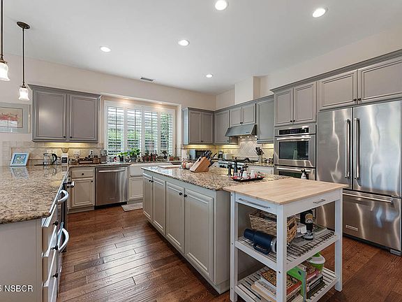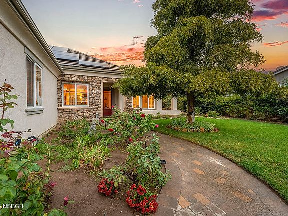 This spacious, single-level 5-bedroom, 3-bathroom home offers approx. 3,039 square feet, with soaring ceilings, recessed lighting, engineered wood floors, and plantation shutters throughout. The gourmet kitchen features stainless appliances, a 6-burner range, granite counters, kitchen island and breakfast bar. Flexible spaces include a parlor/wine room, and an artist studio/media room with private entry. The bright and airy primary suite features a large walk-in closet and spa-inspired bath with soaking tub, dual vanity, and shower. Outdoors, a large wraparound backyard provides multiple areas to lounge, dine al fresco under a pergola, BBQ, and entertain around a fire pit. A laundry room, solar with battery and a 2-car garage add to the appeal. Ideally located minutes from Solvang and Buellton shops, dining, and wineries.