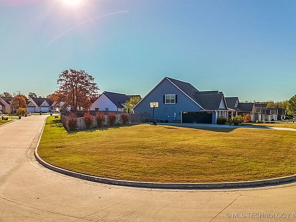 TECH AND TAIL HAVEN: Welcome to your dream home, a remarkable 2017 CUSTOM-BUILT residence in The Heritage, a friendly community in the BYNG SCHOOL DISTRICT, just a short walk from the prestigious Homer Elementary School. This stunning two-story home is one of the largest in the neighborhood, situated on the largest corner lot. Thoughtfully designed with an open concept, it offers four bedrooms, two and a half bathrooms, and a flexible office space near the entryway. The spacious primary suite and laundry room are located downstairs, while three additional bedrooms and a full bathroom are upstairs.