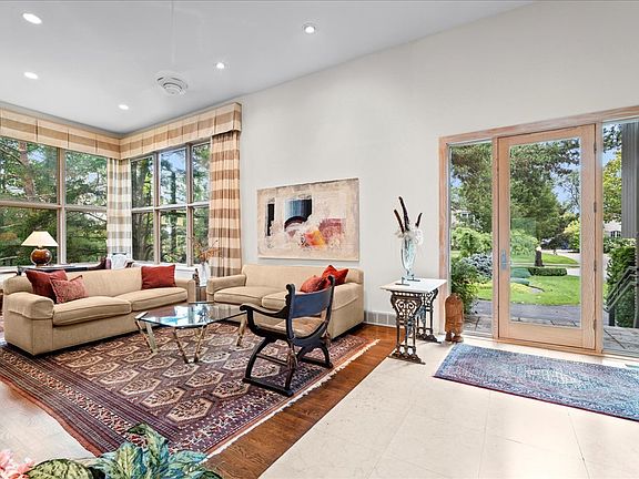Do not miss this Mid Century Modern Contemporary built on just under a half acre of lushly landscaped property and steps from The Glencoe Golf Club. Enter through the Marvin Glass doorway and Marble floor entry to this spacious and open floor plan and find the dramatic Living Room with soaring ceiling, walls of windows, hardwood flooring and the gas starting-wood burning fireplace. The spacious Dining Room leads way to the Screened-In Porch and upper wood Deck. The newer Kitchen offers wood cabinetry, Granite counters, hardwood flooring, a Built-in table and Electrolux induction oven-cooktop and refrigerator/freezer and newer Pella Sliders. The upper level offers three bedrooms-two are ensuite including the Primary bedroom addition with a balcony. Some bathrooms are newer. A few steps up you will find a fourth bedroom and a fourth full bathroom and a walk in attic with attic fan. The lower level offers the original Family Room and 1/2 guest bath and there is a expansive second Family Room that was added by the current owner and it leads to the outdoor patio and rear yard through the newer Pella Sliding doors. There is a finished sub basement with beautiful paneling and a laundry room and walk out access. Over 4600 SF, house generator, underground sprinklers, heated outdoor front steps, a heated 2+attached garage, house alarm, zoned HVAC, replaced windows. Close to town, train, beach, trail, Botanic Gardens, Ravinia Festival and award winning schools including New Trier High School. Easy access to the expressway.