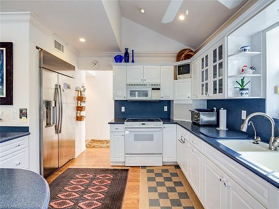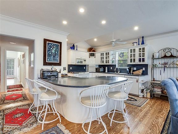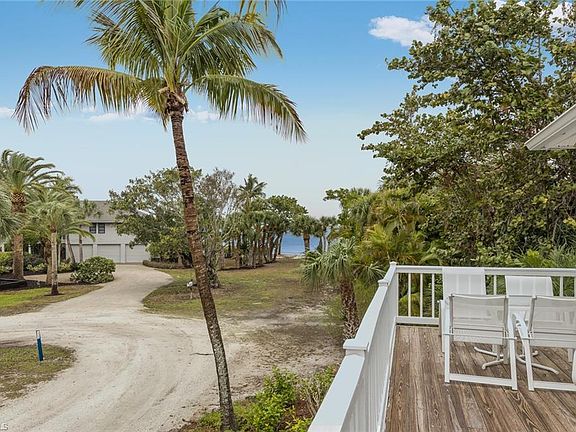 Unique East End Olde Florida style home with partial Bay views. Original structure was once the ticket office/tea room for the Sanibel Ferry! Home was custom built by current owner in 1995. This home offers an open floor plan - kitchen with breakfast bar, solid surface countertops, vaulted ceilings and open to great room with fireplace. The main level also has a dining area, 2 bedrooms, each with en-suite bathrooms, an additional full bathroom, large laundry room, pantry storage, front deck with bay views and private screened lanai along the back of the house. Upstairs is the master retreat with a spacious bathroom, walk-in closet and bedroom/sitting room with vaulted ceilings open to a large deck. There are Florida Pine floors throughout, fully enclosed lower level and a 2-car garage. Properties on either side are not buildable = great privacy! Steps to gulf and bay beaches - perfect East End location. Idyllic Sandy Lane. 1230 Ferry Road offers a unique opportunity.